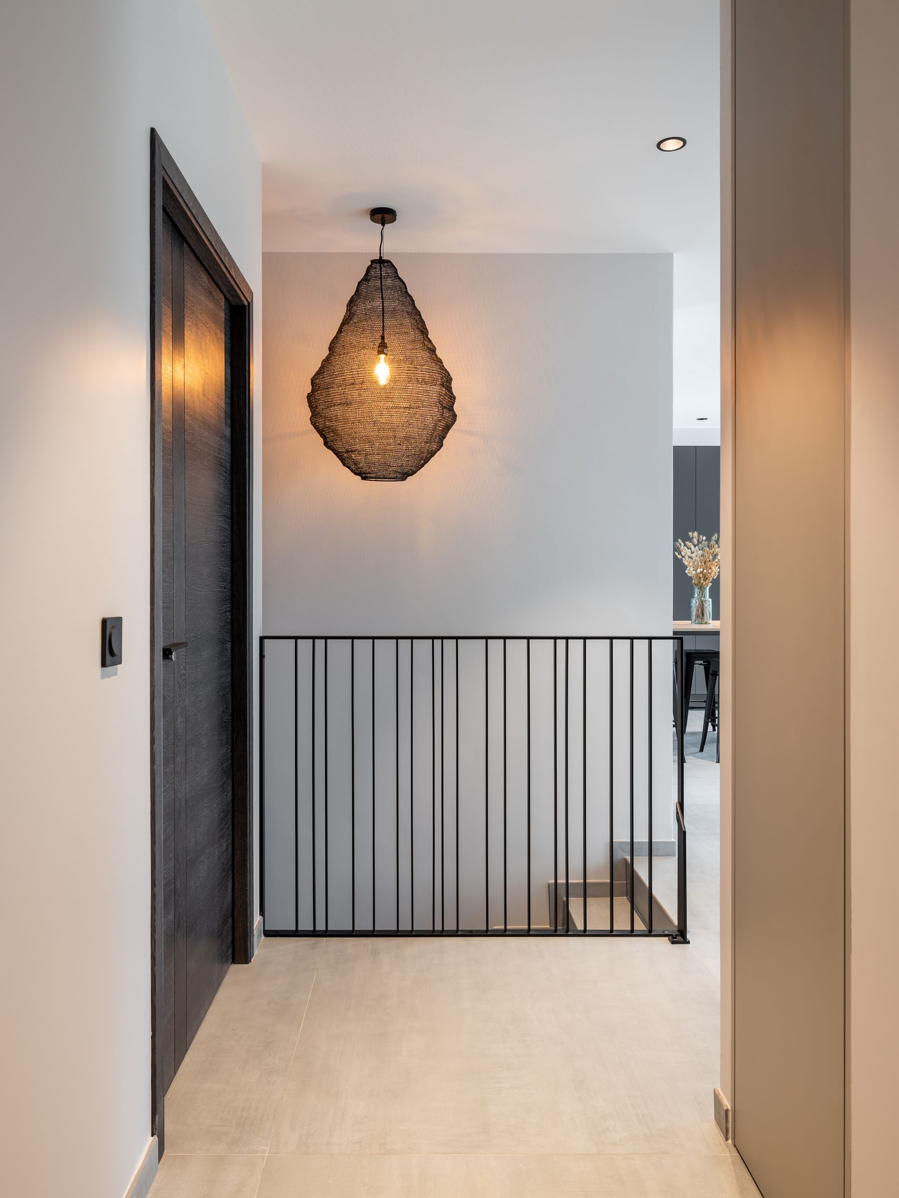 En contraste avec la pièce à vivre, cet espace est plus intime et reposant. Marqué par des tonalités plus chaudes, l’éclairage y est moins intense.